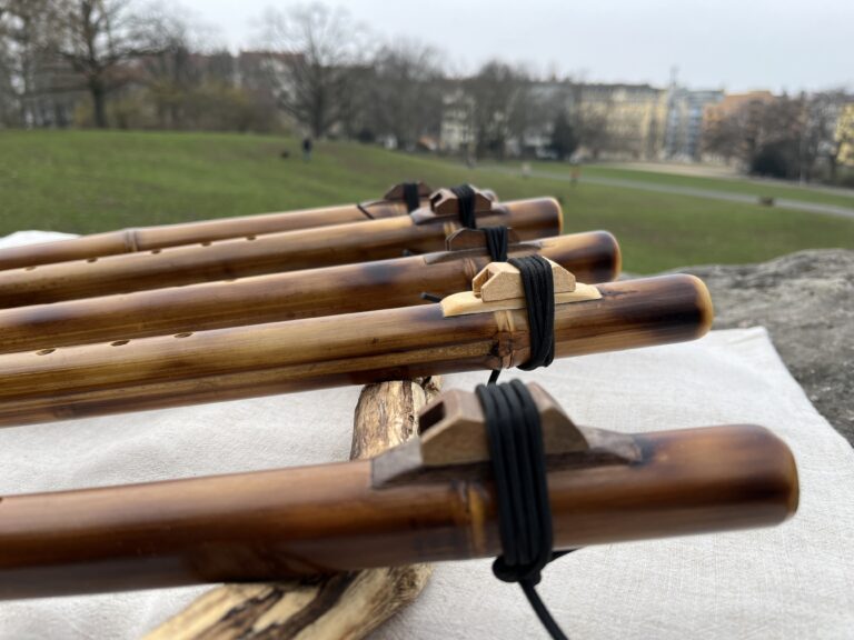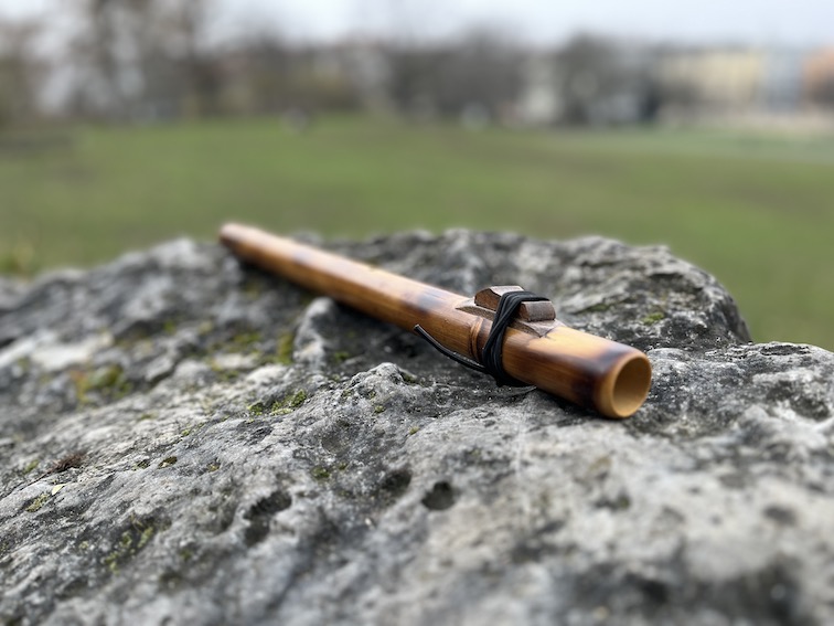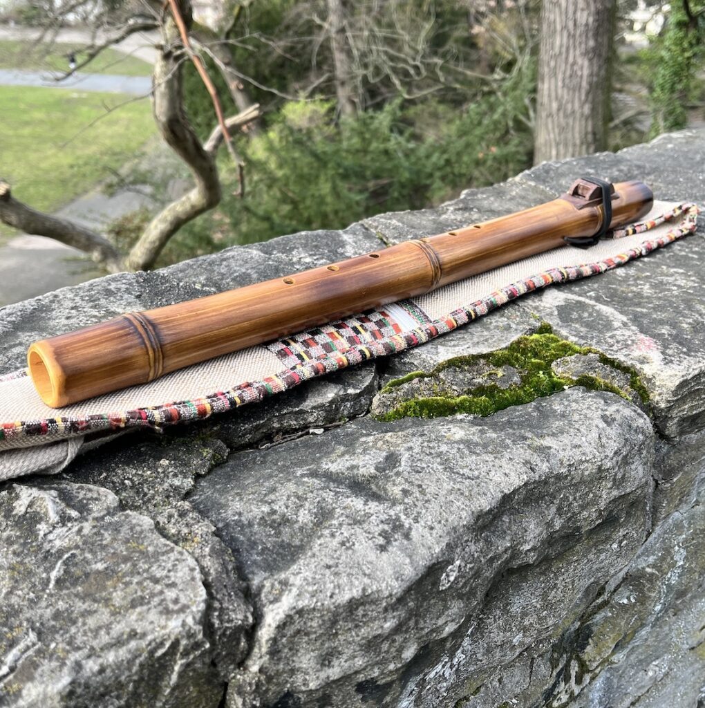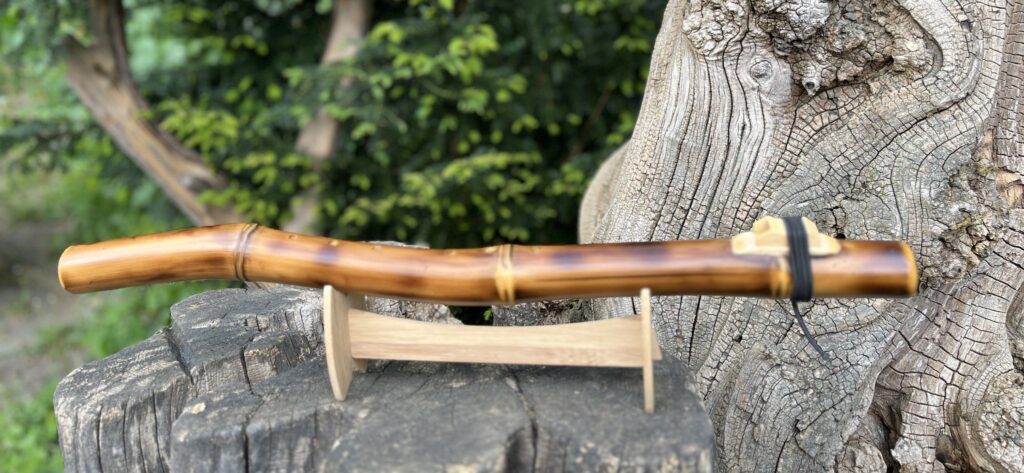 The Bamboo Line by Singh Flutes. These flutes have a distinct sound compared to typical wood flutes as they project louder and have a brighter sound because the bamboo doesn’t absorb the vibration as much as softer woods. The mouthpiece is left open which provides a nice feel and look. The bamboo is first burned to give it a textured antique look. Then the flute is finished with a natural, non-toxic, eco-friendly finish that is polished to a nice shine. These flutes are also tuned to 432hz and provide a beautiful sound current with all the healing properties of the Native American Style Flute.
